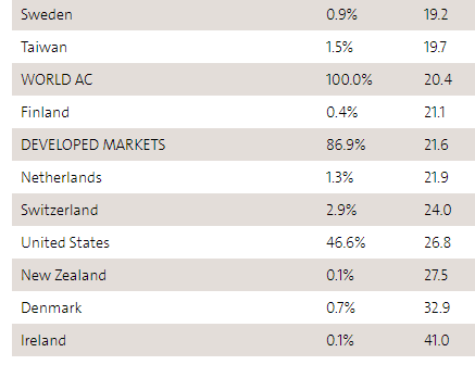 미국 밑으로는 세 나라밖에 없습니다. 이 말은 미국의 CAPE는 상당히 고평가 되어있다고 볼 수 있습니다.